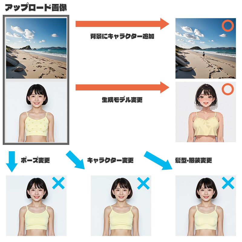 キャラクターに対するプロンプトの効きは弱いです。