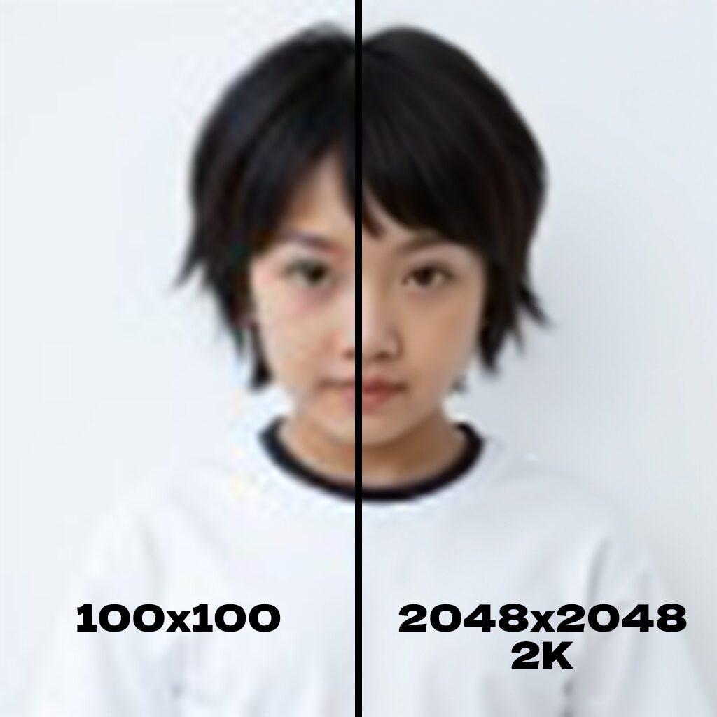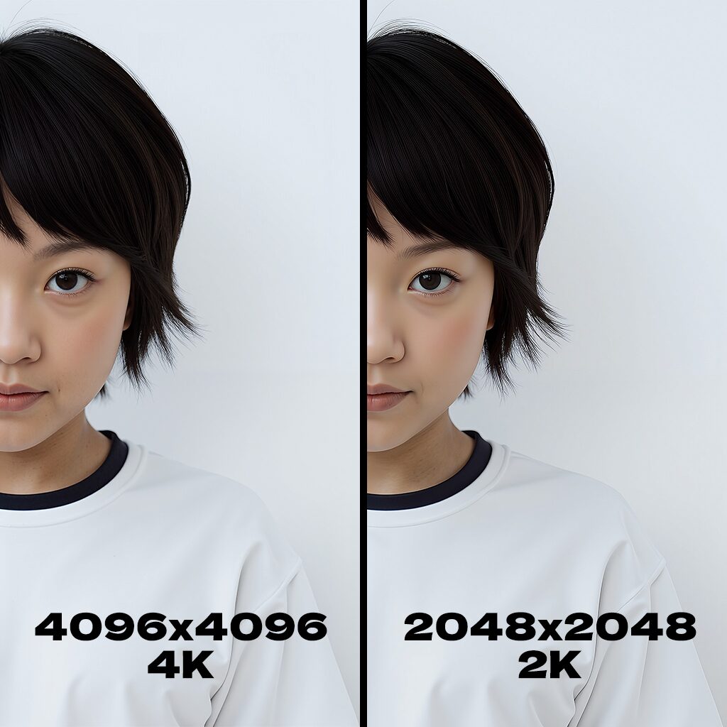 例えば幅100px/高さ100pxの画像を「4K 4096px」を選択して生成した場合、幅4096px/高さ4096pxの画像が生成されます。
