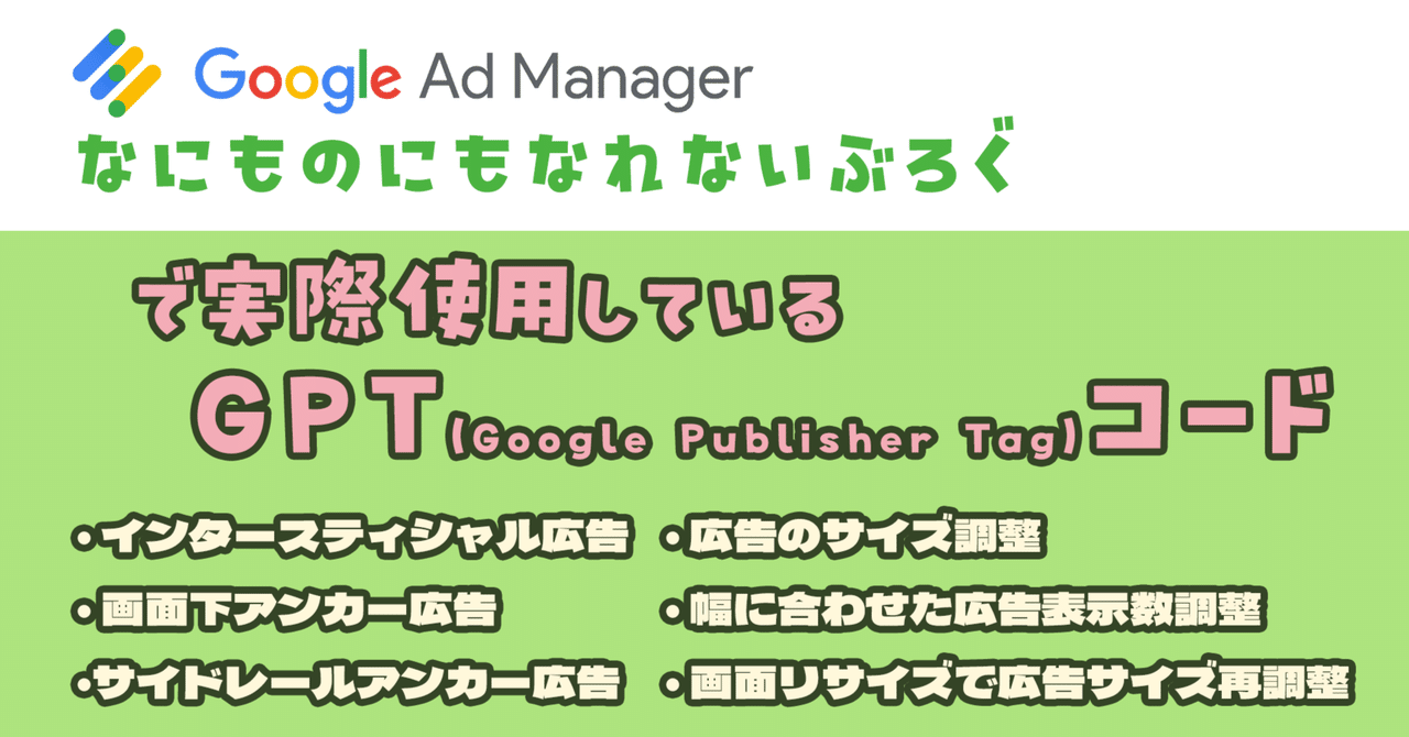 Google Ad Manager (GAM) を使った広告配信において、より柔軟な設定や詳細なコントロールを行いたい場合、GPT (Google Publisher Tag) を利用する方法があります。前回の記事では管理画面から簡単に設定できる「コード不要広告ユニット」を紹介しました。