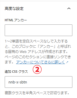 他のテーマのボタンブロックでもリンクURLとCSSクラスを設定することが出来れば実装できます。